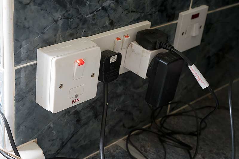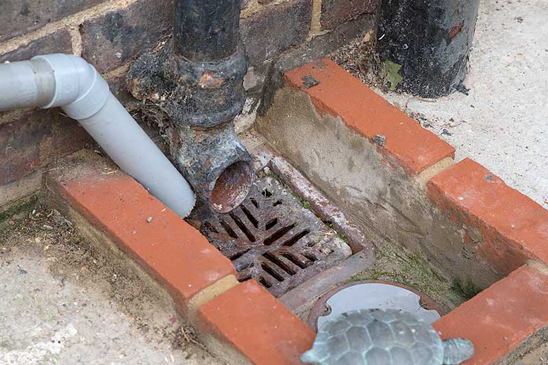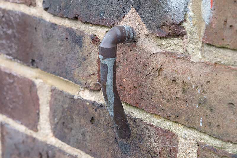 The doors are ill fitting and the windows badly sealed. The garden path has subsided and been patched. Redundant pipes are capped and left to provide trip hazards.