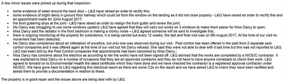of the problems made their presence known. Maintenance of the house by L&Q has