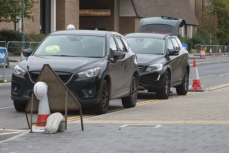 As I made the long detour to cross the road from North to South two cars drew up