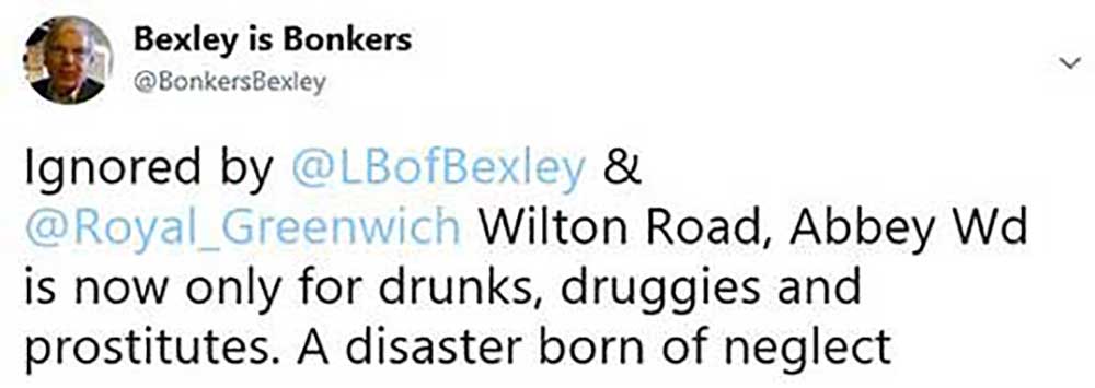 Wilton Road - has the highest level of Anti-Social Behaviour in the borough of Bexley.