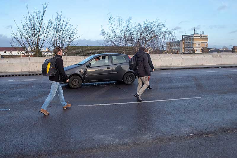 Bus passengers can only take their life in their hands and dodge the traffic on