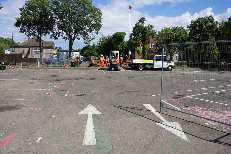 the railway fence, rearranging a whole load of electrical cables and making room for a