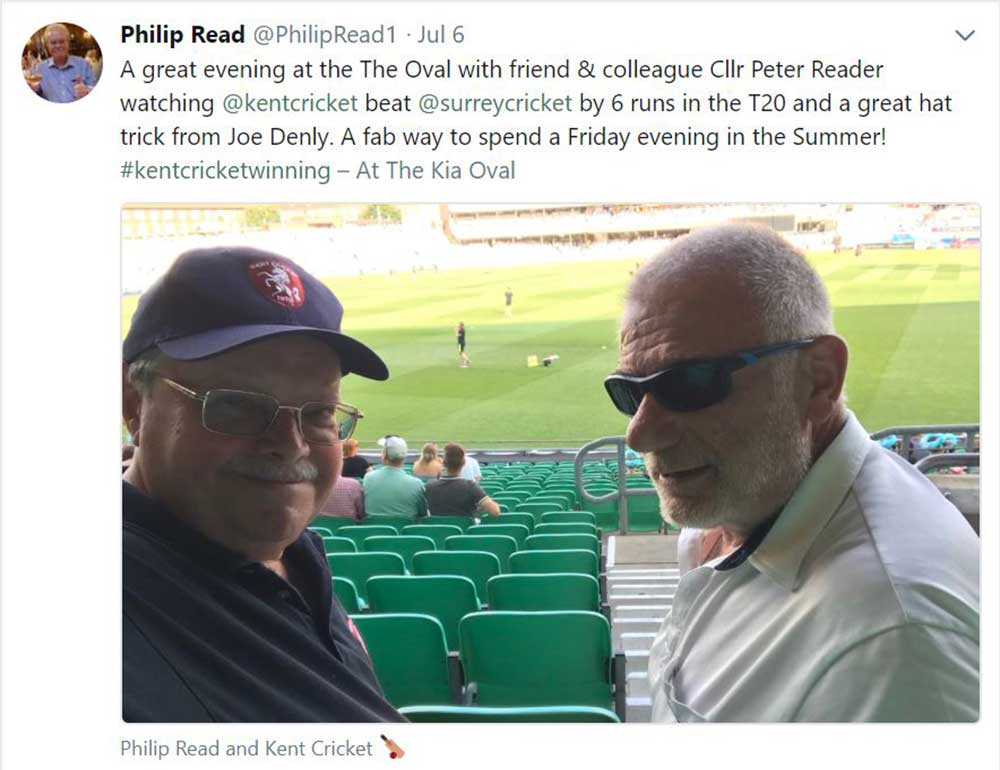 You have to have your wits about you when going to watch the cricket at the Oval, too many people to avoid. John Major a couple of matches ago, then Philip Read.