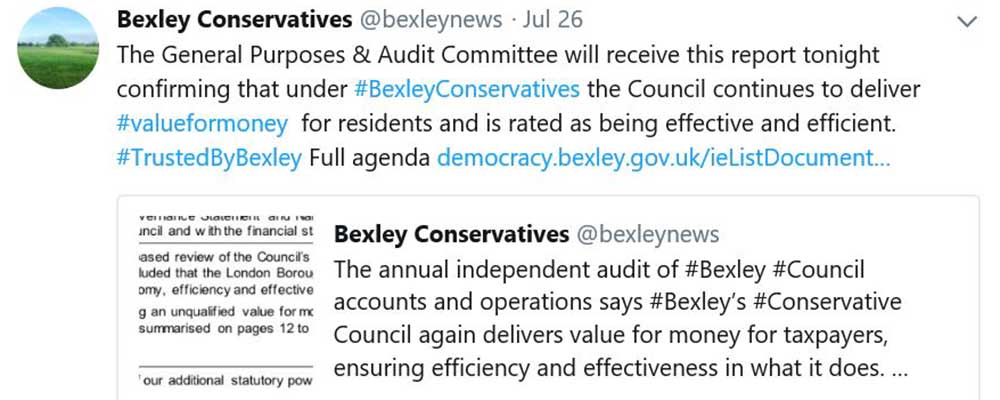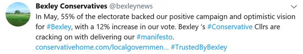Bexley Conservatives Tweeted about being in the top spot that year too.