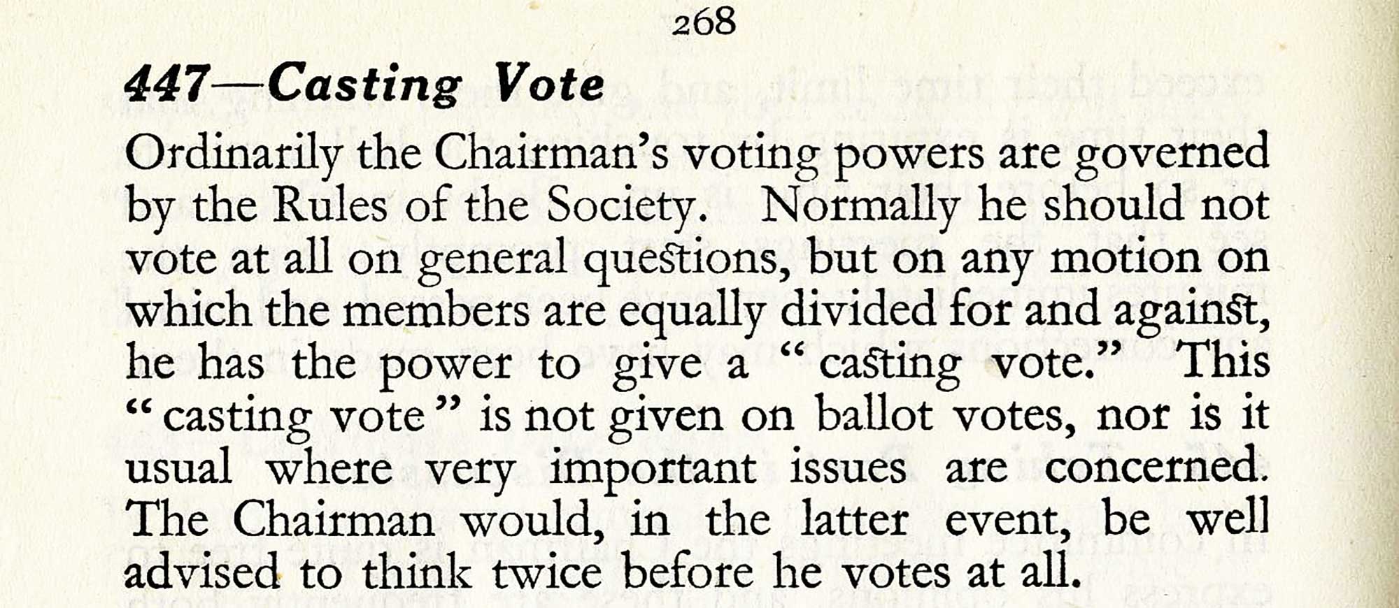 The Chairman would be well advised to think twice before he votes at all.