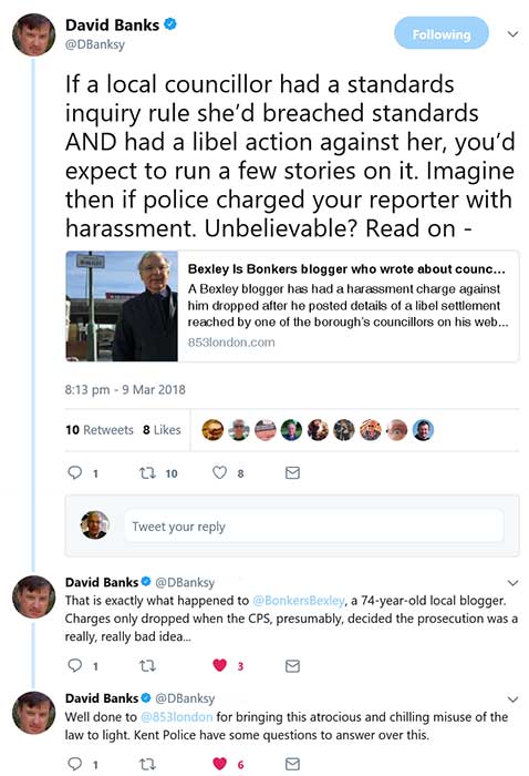 The removal of the threat of six months imprisonment for publishing news of a Bexley Councillor labelled a liar by the celebrity solicitor Mark Lewis did remarkably little to lift my mood but yesterday’s article by 853blog seems to have done the trick. It also created quite a big stir on Twitter.