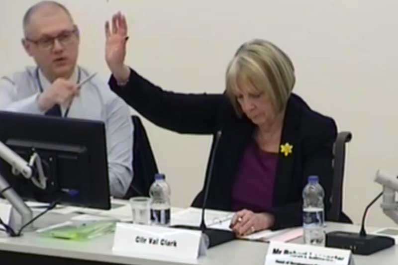 Chairman Councillor Val Clark failed to announce the result but the webcast,
