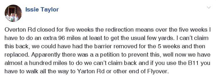 a time but not so Overton Road where total closure necessitates a detour of very nearly two miles.