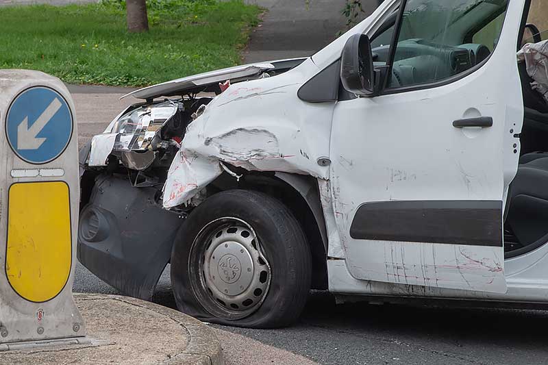 I would guess by the red paint on the white van that the driver tried to overtake the bus and maybe failed to see the