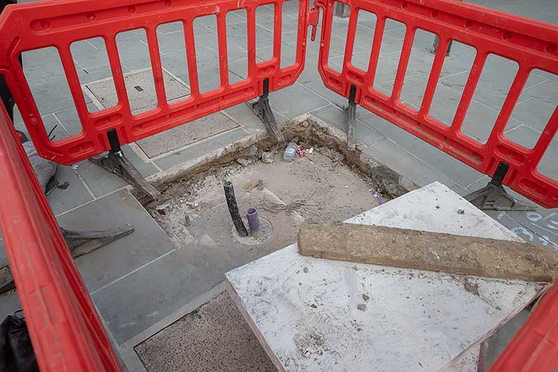 Patched up footpaths and third rate shop fronts. The one opposite the Clocktower