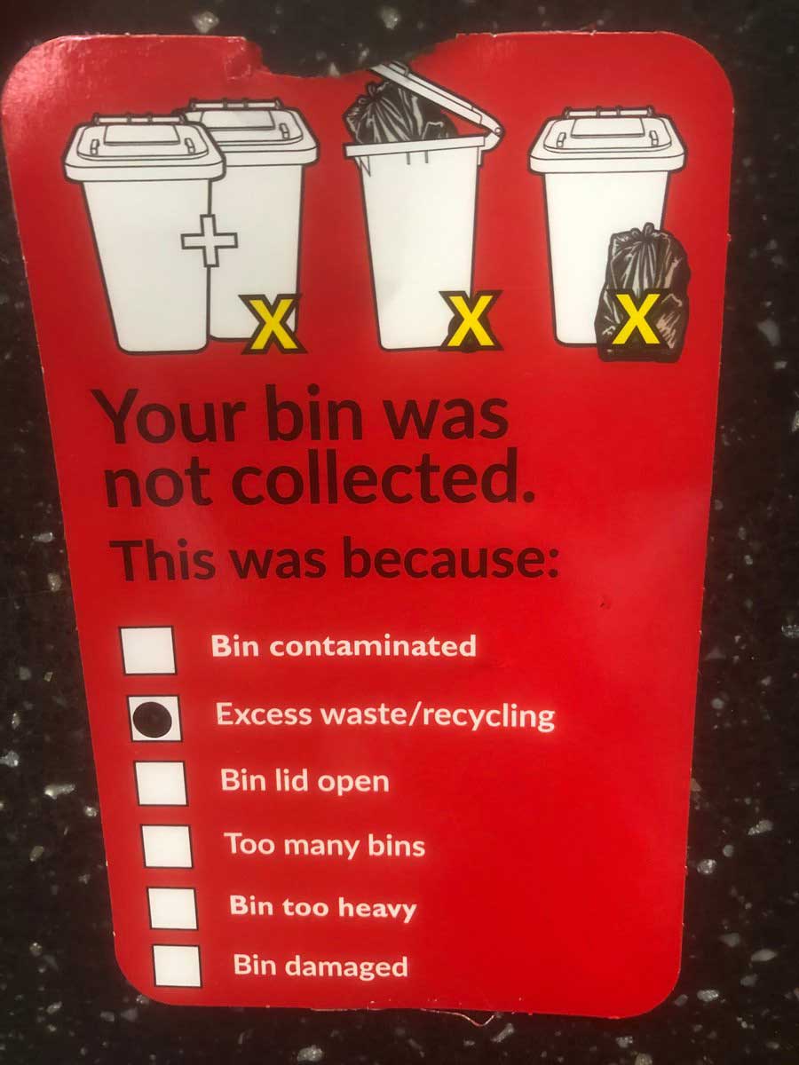 explains why lots of bins were out on the road on Friday awaiting a collection that isn’t due for another week.