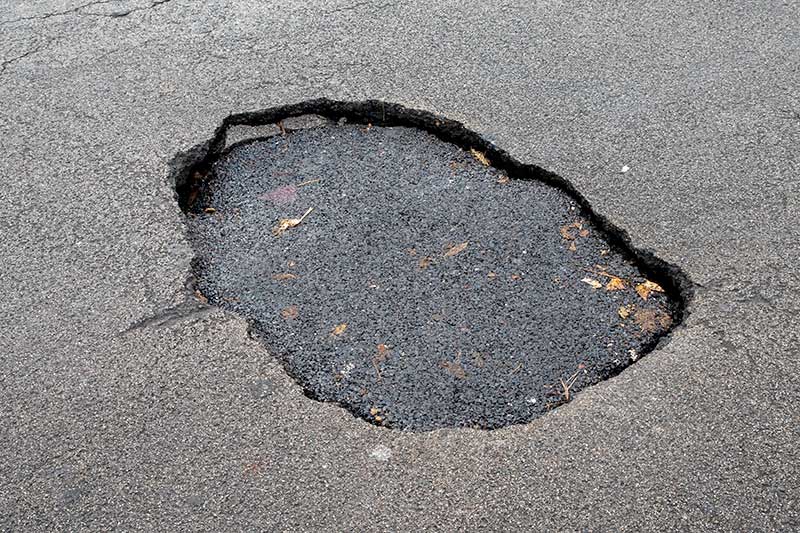 men rushed to patch it up before a motor cyclist went over his handlebars.