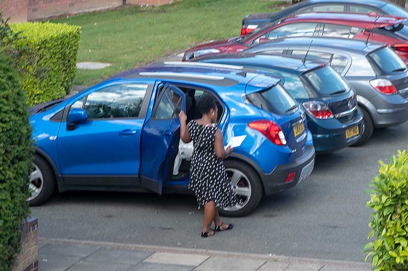 neighbour who drives a tiny car park on my drive because there was no room for her