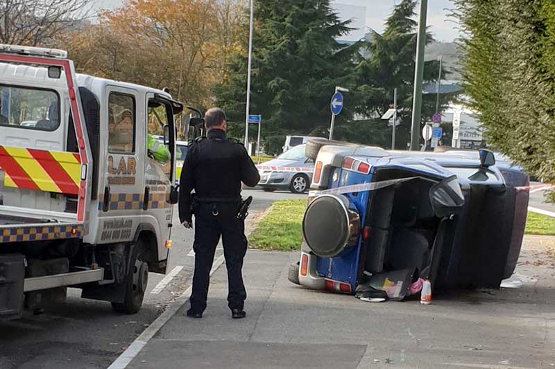 crash this week at Ruxley Road and thought to be caused by a top heavy vehicle clipping the kerb on