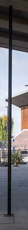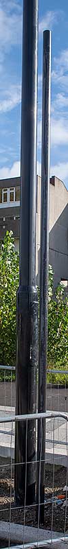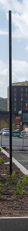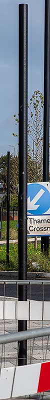 at the north eastern end of the flyover. It is on a lamp post on the flyover