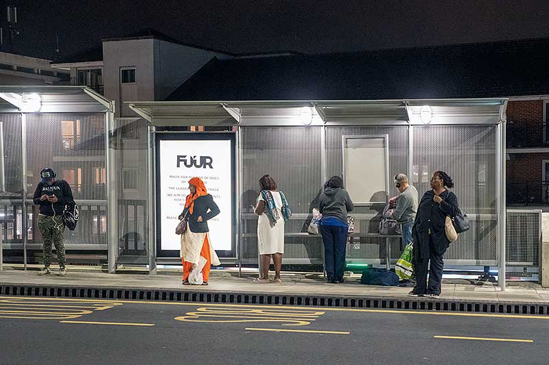 At various bus stops along Harrow Manorway people were waiting for buses that
