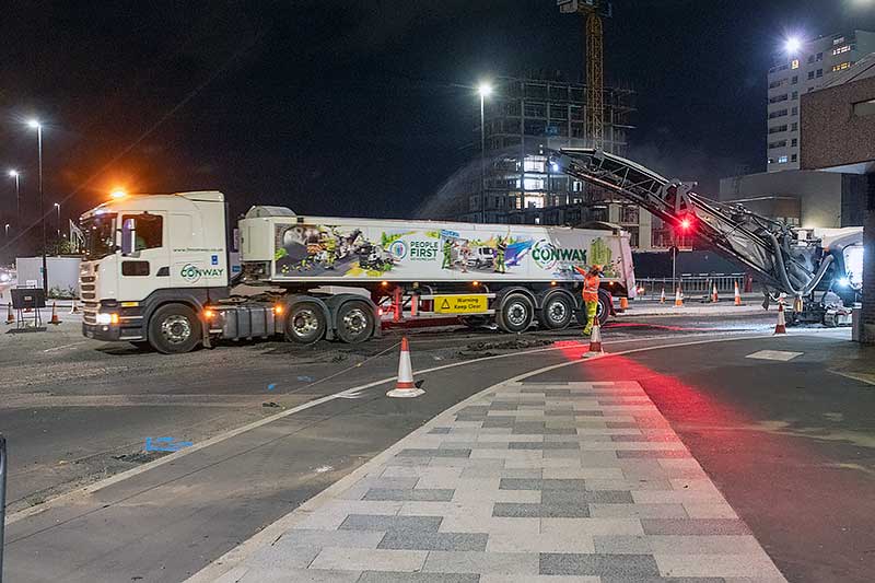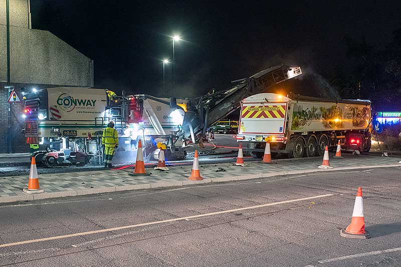 resurfacing; why it will take three whole weeks is not yet clear, maybe the roundabout is to be remodelled.