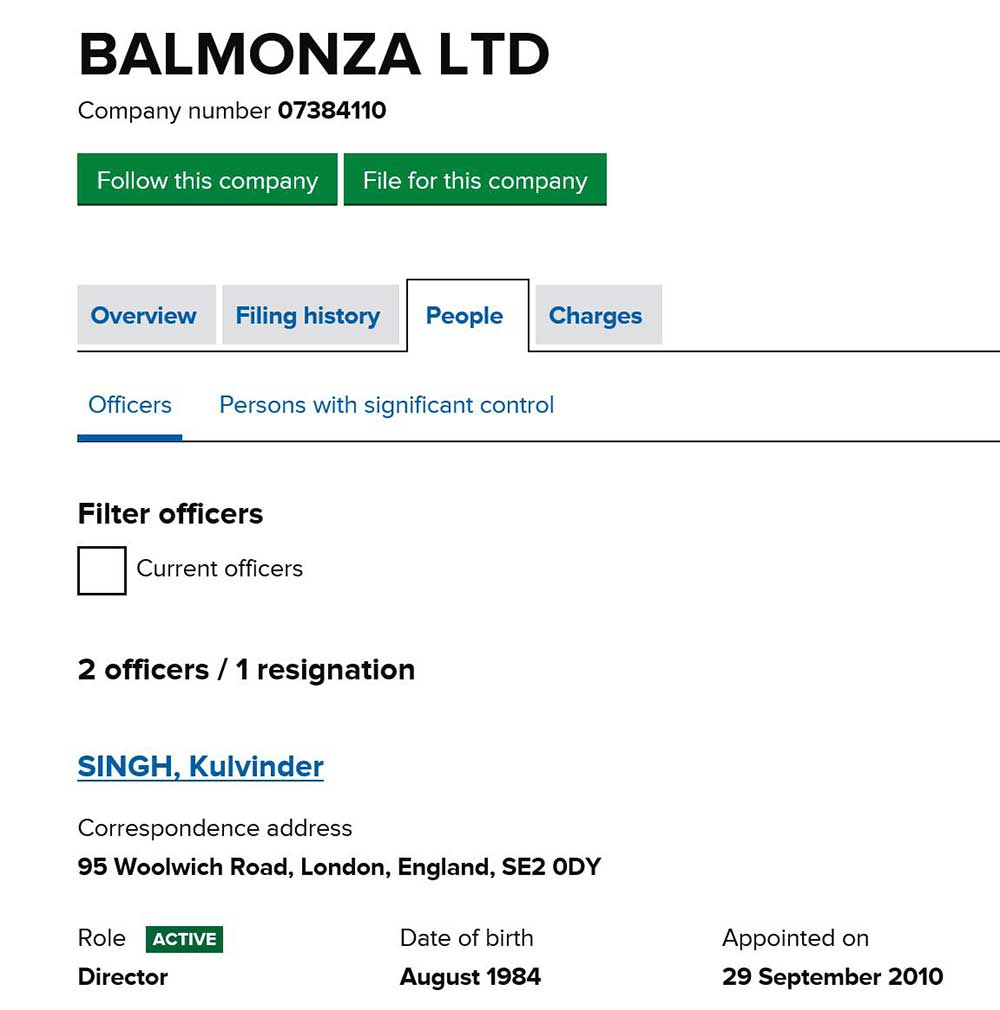 It is the registered address of Balmonza Ltd and linked to Kulvinder Singh. Mr. Singh is the man behind
