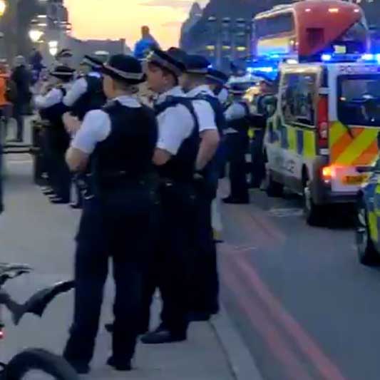 Led by Met. Commissioner Cressida Dick Westminster Bridge was lined by police