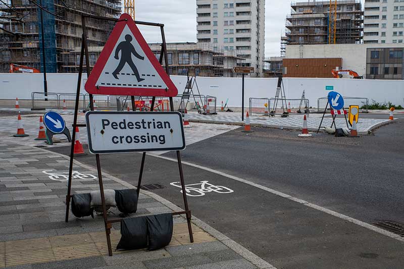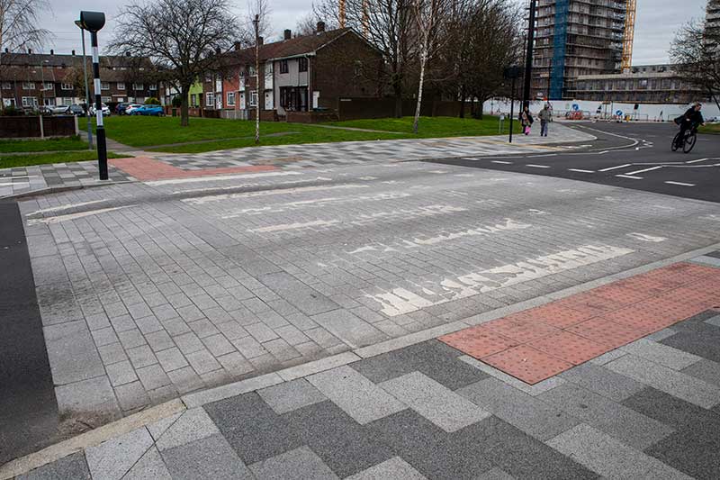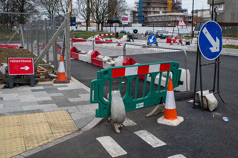 blocks were installed at the Sainsbury’s pedestrian crossing and the road was marked with paint for the bus lanes and the