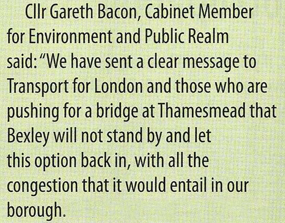 Letter to News Shopper. Every bridge consultation in Bexley had come out in its favour. In 2013 almost everything that Councillor Craske said was designed to conceal the truth.