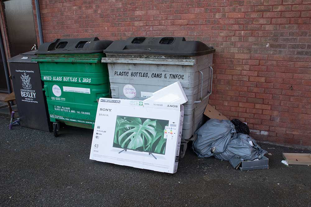nowhere for extra bins to go. To compensate Bexley Council placed communal street style bins