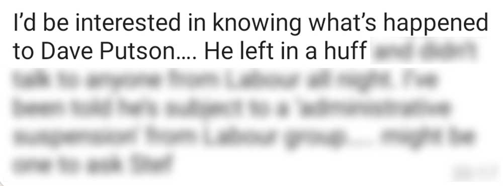 It was followed up with hints that Councillor Putson had left the Labour Party but without confirmation it couldn’t be published here.