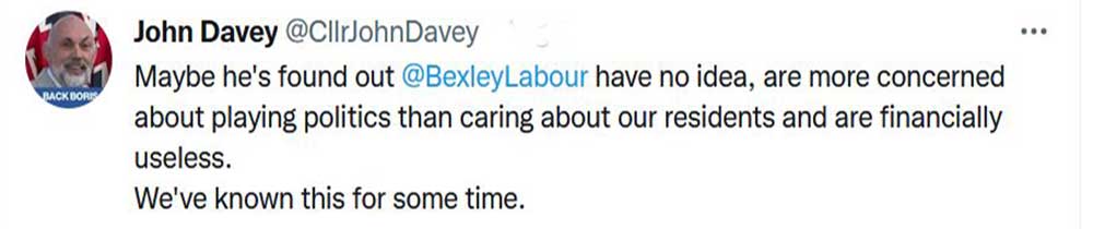 blame on to Bexley Labour when they had absolutely nothing to do with it. How