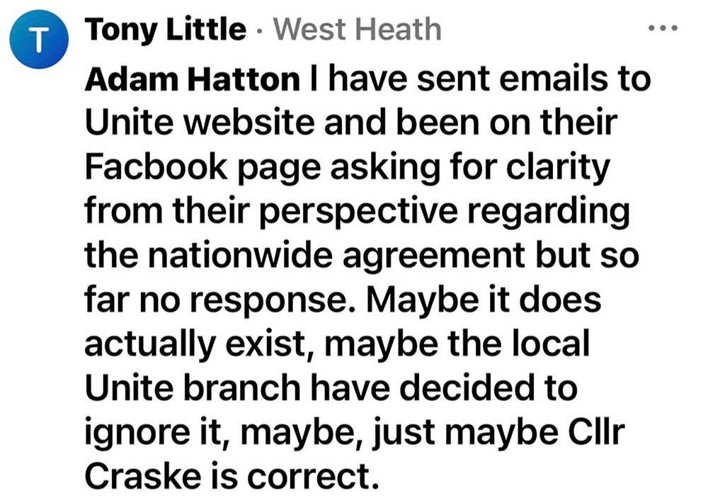 It was followed up with hints that Councillor Putson had left the Labour Party but without confirmation it couldn’t be published here.