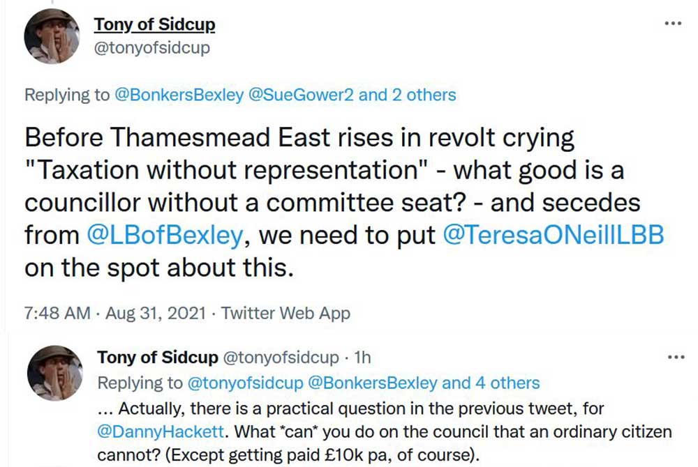 there is only Twitter to fall back upon. Fortunately Tony is keeping Bexley Council on their toes.