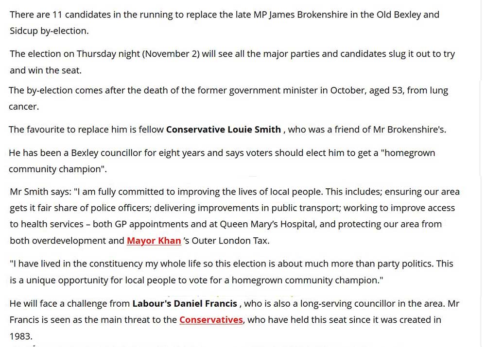 for the Old Bexley & Sidcup by-election and voting will take place on 2nd November.