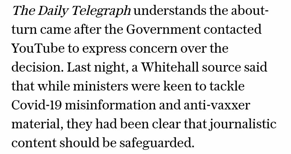 Fortunately it looks as though our Government leaned on YouTube. After Michael Gove