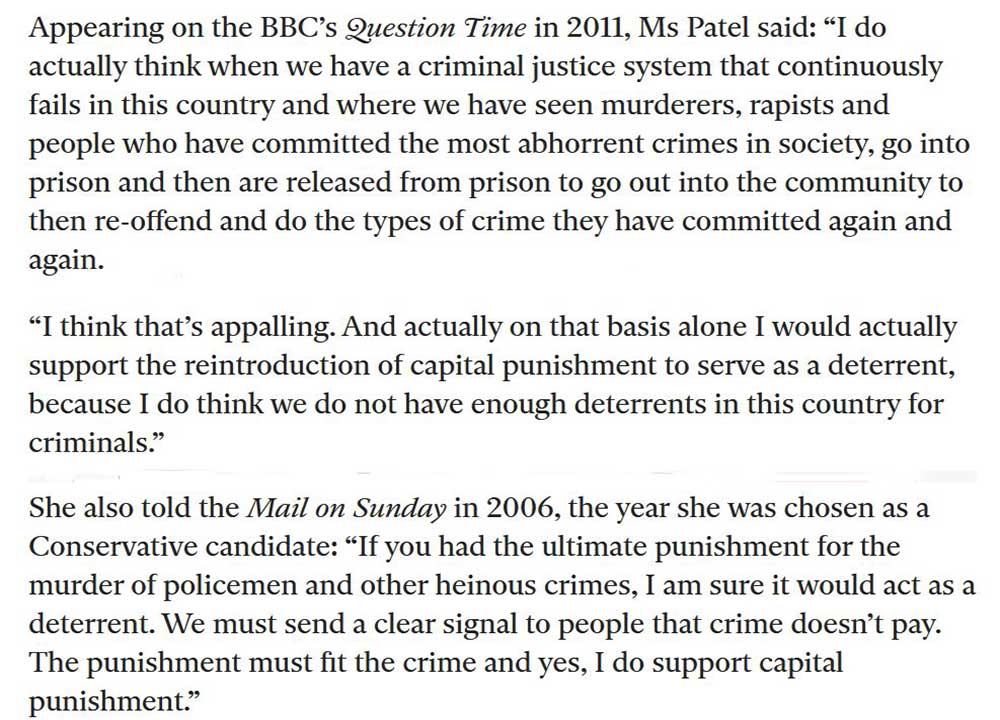 Priti Patel as Home Secretary I cannot claim to be surprised. Even back in 2011