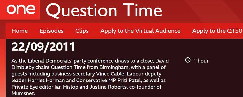 I wasn’t watching much TV and Question Time was definitely not something I had