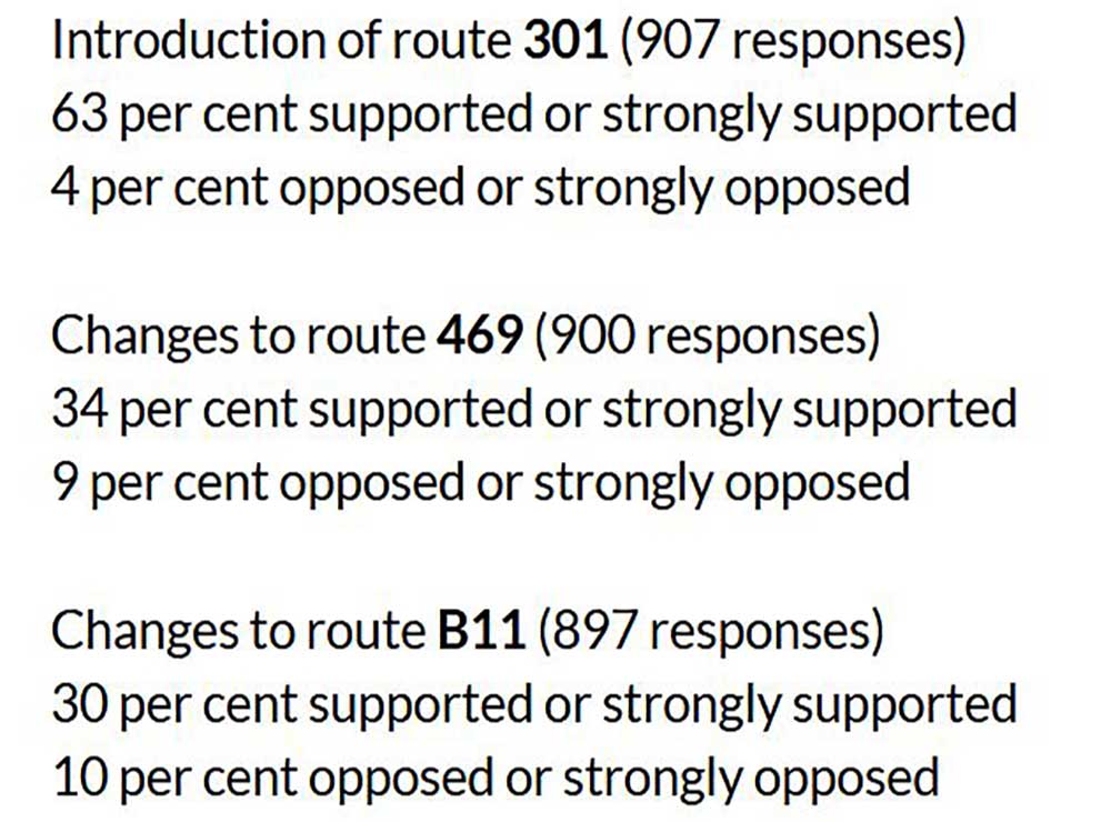 consultations. According to them (below right) most people were in favour of curtailing the B11 route and reducing its frequency.