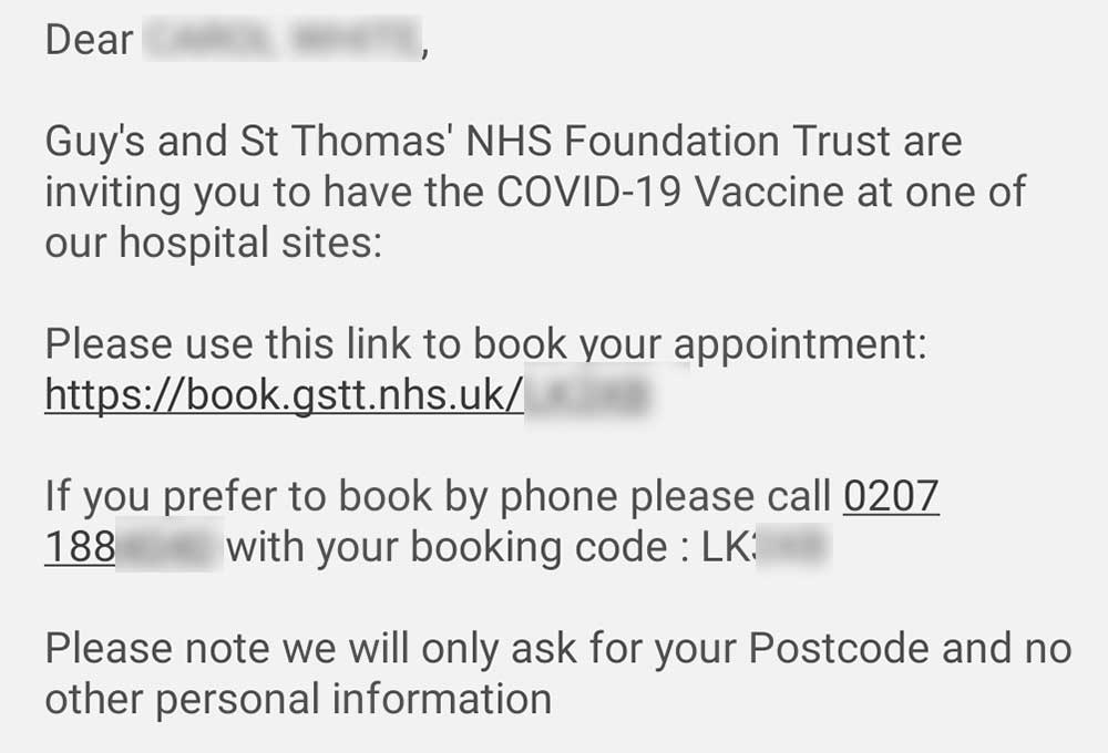of last week and had the Pfizer jab on Tuesday had a text message asking to