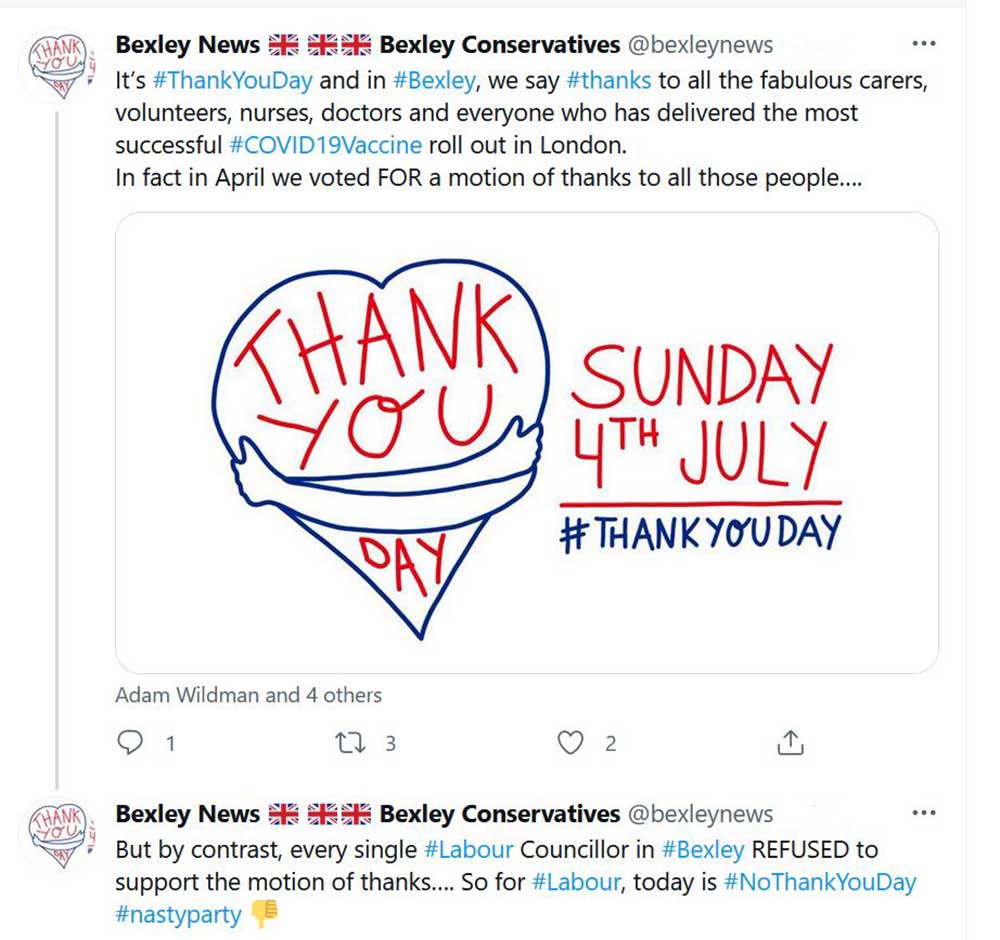 The Tories predictably were against extending thanks beyond Bexley and probably it was the correct decision but any suggestion that Labour Councillors were