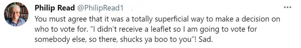 The end of the month sees two pictures of Councillor Philip Read delivering Conservative leaflets in