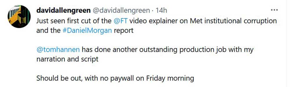 To emphasise that the Met. is corrupt all its top brass and Sadiq Khan the Mayor