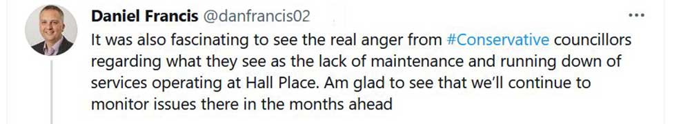 weddings etc., had been booked and “that is key to making Hall Place pay for itself. It has been neglected.”