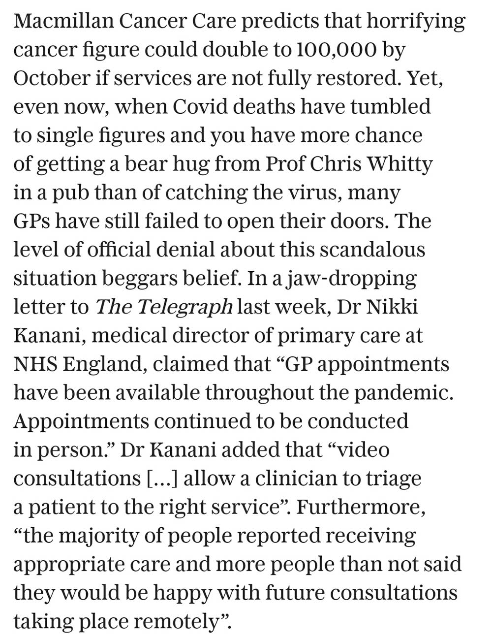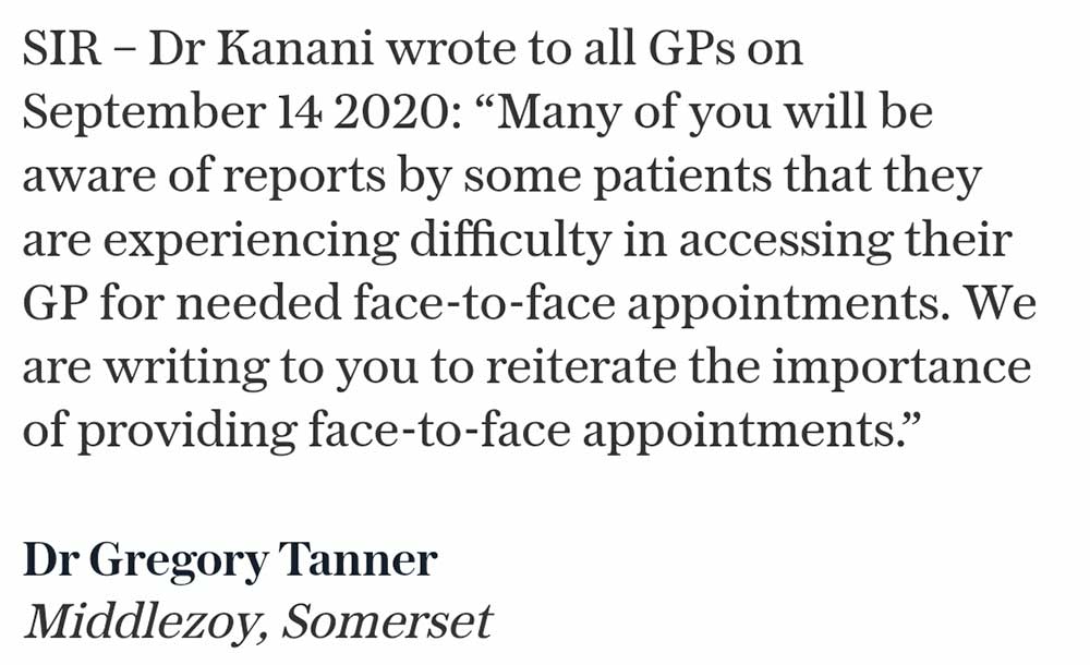 Eight months ago Kanani was advocating face-to-face appointments, today it has been revealed that they are all but abandoned.