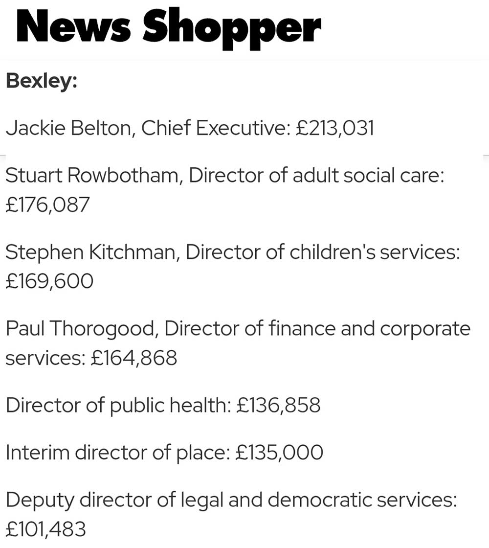 Bexley’s Chief Executive is the highest paid in South East London on £213,000 a year. Seems entirely fair to me. Bexley has by far