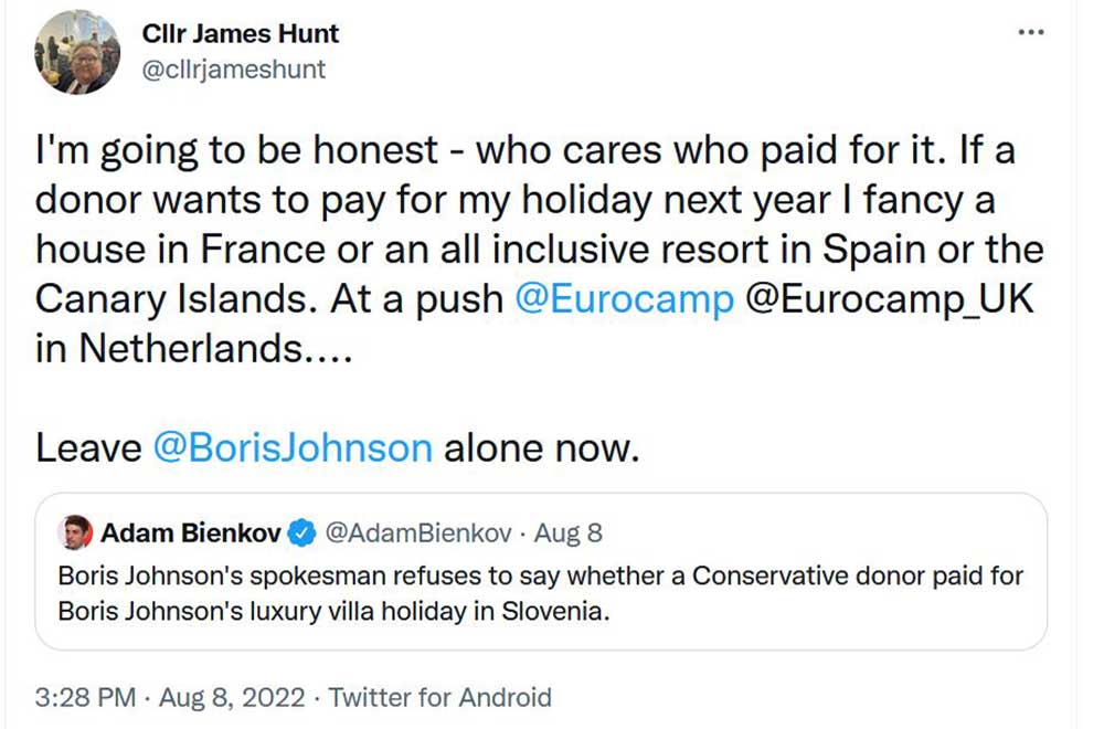 couple of weeks ago Bexley’s two-timing former Mayor James Hunt perhaps ill-advisedly