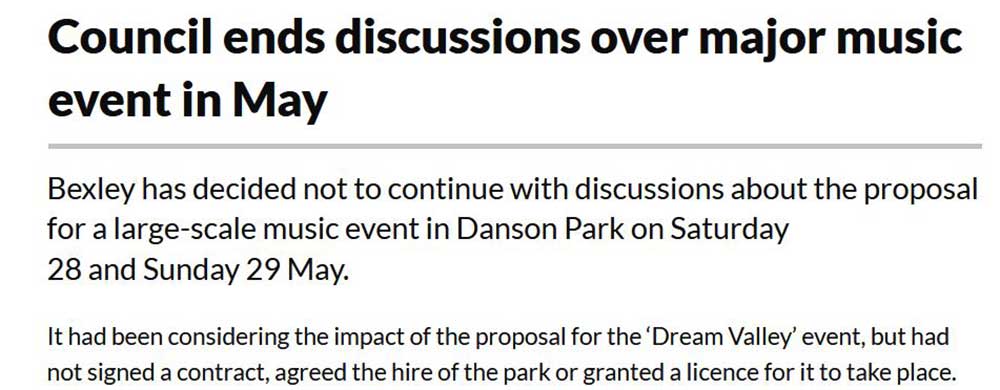 And now Dream Valley is off. Bexley Council says it never signed the contract
