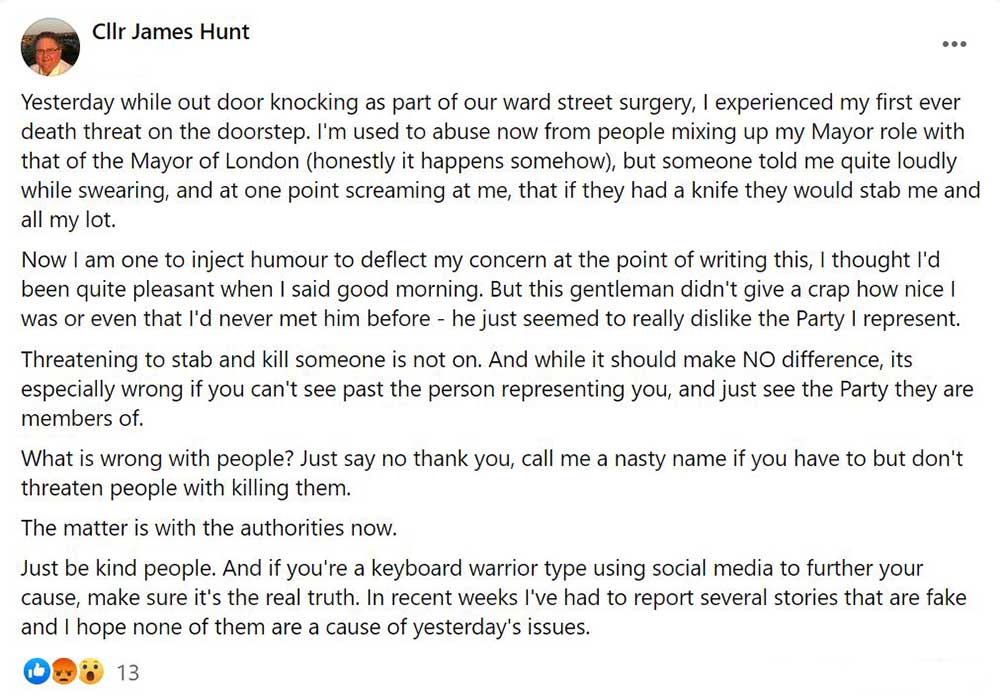 In the top three of those would be Mayor James Hunt. A genuinely nice guy