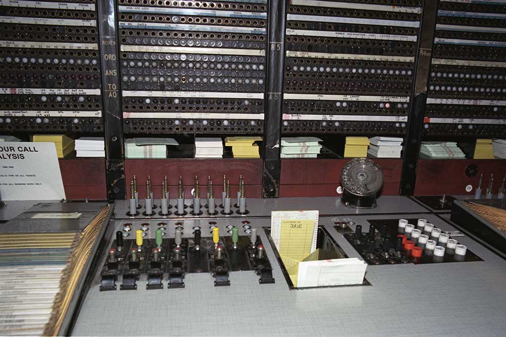 formed of readily available office tables instead of the massive purpose designed switchboards used hitherto. The picture is of the one in Putney to which I was a