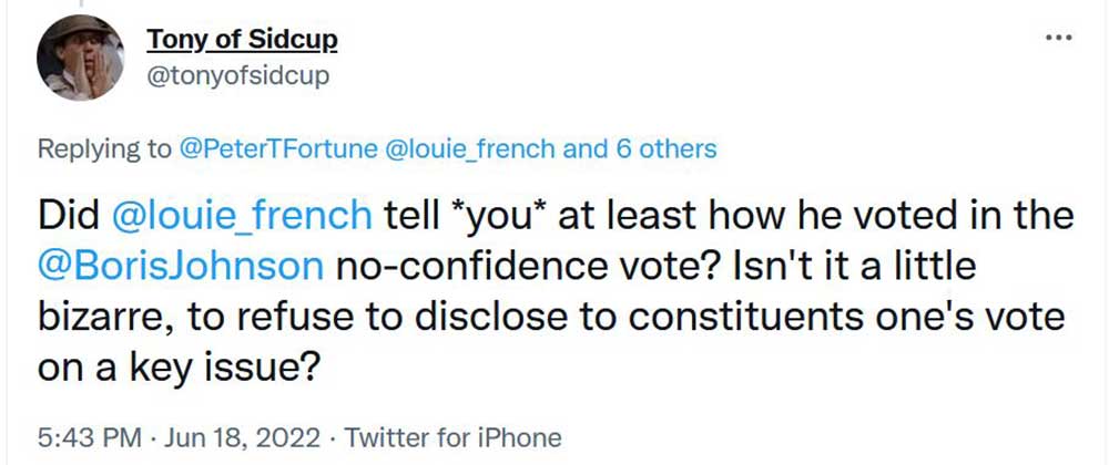 Louie French for his promised answer. It is a difficult position for an MP and