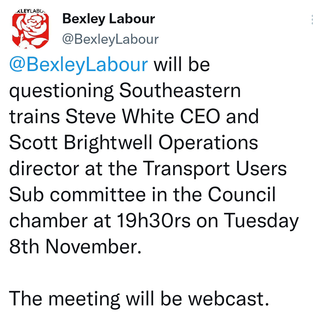 There was no time for Labour Councillor Anna Day’s (Slade Green & Northend) question about Southeastern slashing train services across the borough.