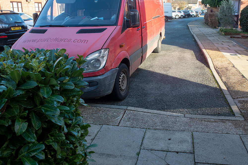 Within 150 yards two pavement parkers, one across the dropped kerb at a road junction and another