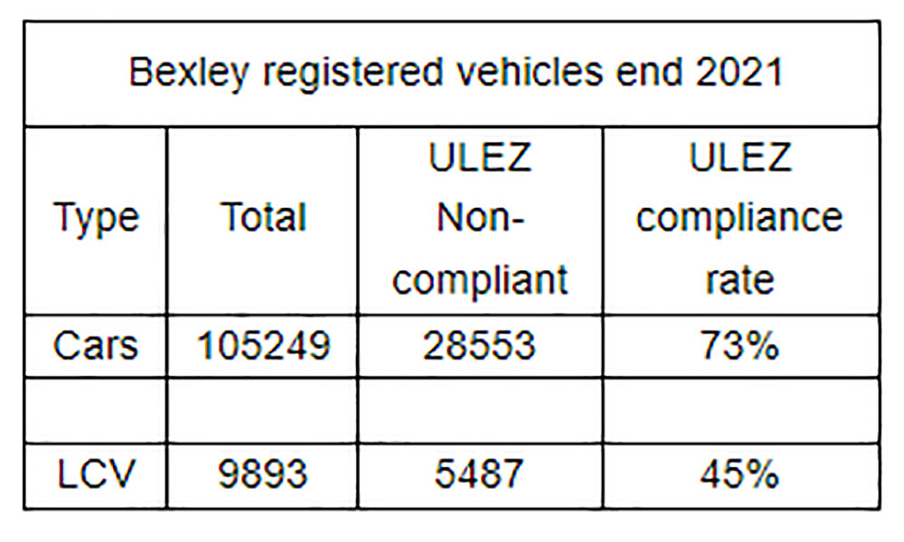 cars and 55% (or about 5,500) of Bexley-registered LCVs were non-ULEZ-compliant.